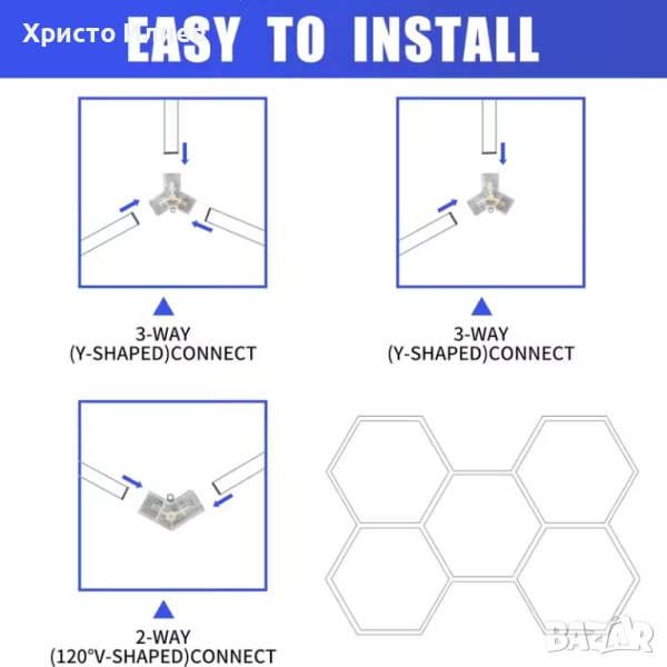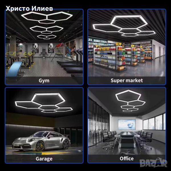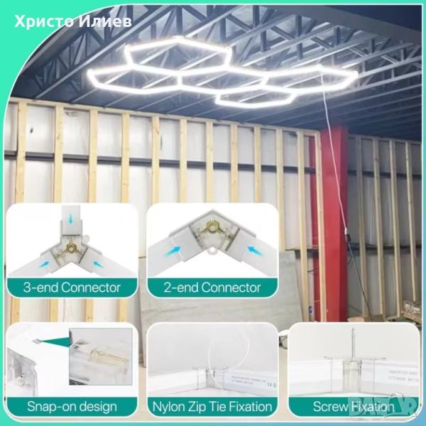 LED лампа за гараж, шестоъгълна мрежа, осветителни тела за магазини, свързваща се, щепселна, за гараж, работилница, мазе, фитнес зала, склад,