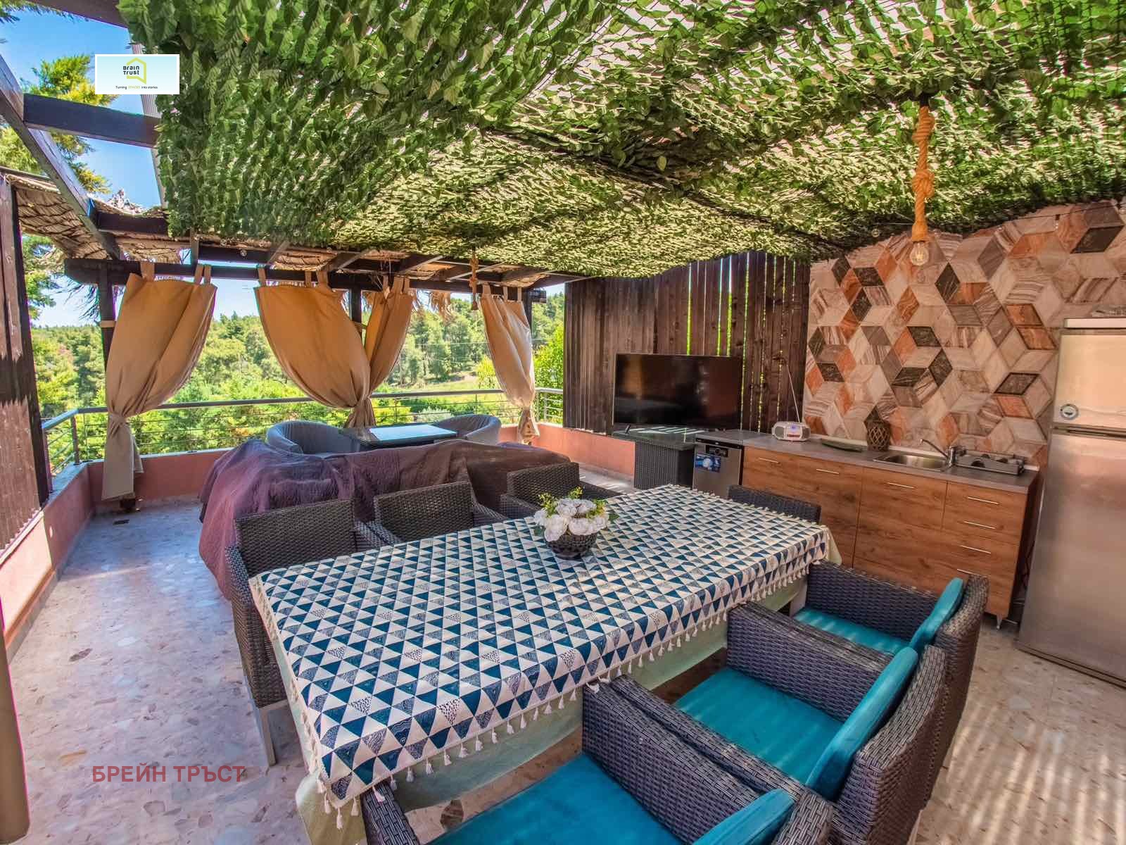 Brain Trust Ви предлага къща в гръцкото градче Сани, което се намира на 'първия ръкав' - Касандра на п-в Халкидики. Жилищната площ е 160 кв.м. като в тях се включват три етажа:
