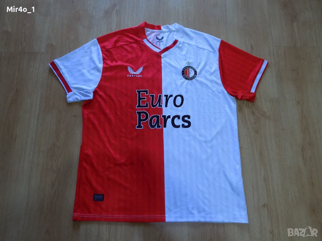 футболна тениска feyenoord omerovic castore!много добро състояние!без петна или дупки!Размер по етикет 3XL!погледнете точните размери!Ширина под мишниците 63 см,дължина 80 см!цена 35 лева!