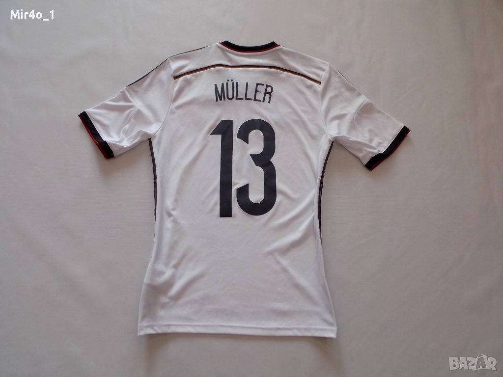 футболна тениска germany adidas!много добро състояние!без дупки!има няколко забележки,погледнете всички снимки!Размер по етикет S!погледнете точните размери!Ширина под мишниците 50 см,дължина 71 см!цена 25 лева!