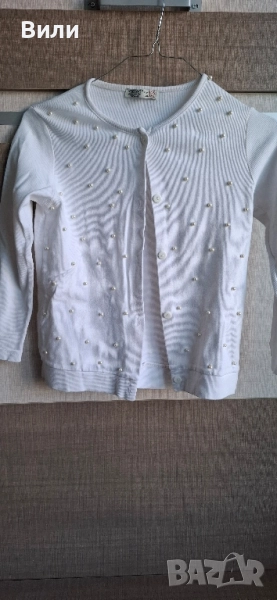 3. Бяла кокетна жилетка 140 см, но е разтеглива, става до 152 см, обличана 2 пъти - 10 лв