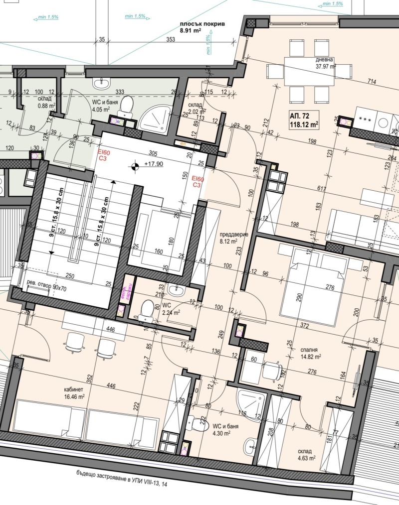 Представяме ви двустаен апартамент в сграда с акт 14 с обща площ от 135.16 кв.м. на 4-ти среден етаж, с включено мазе идеалното място за съвременно и комфортно живеене!