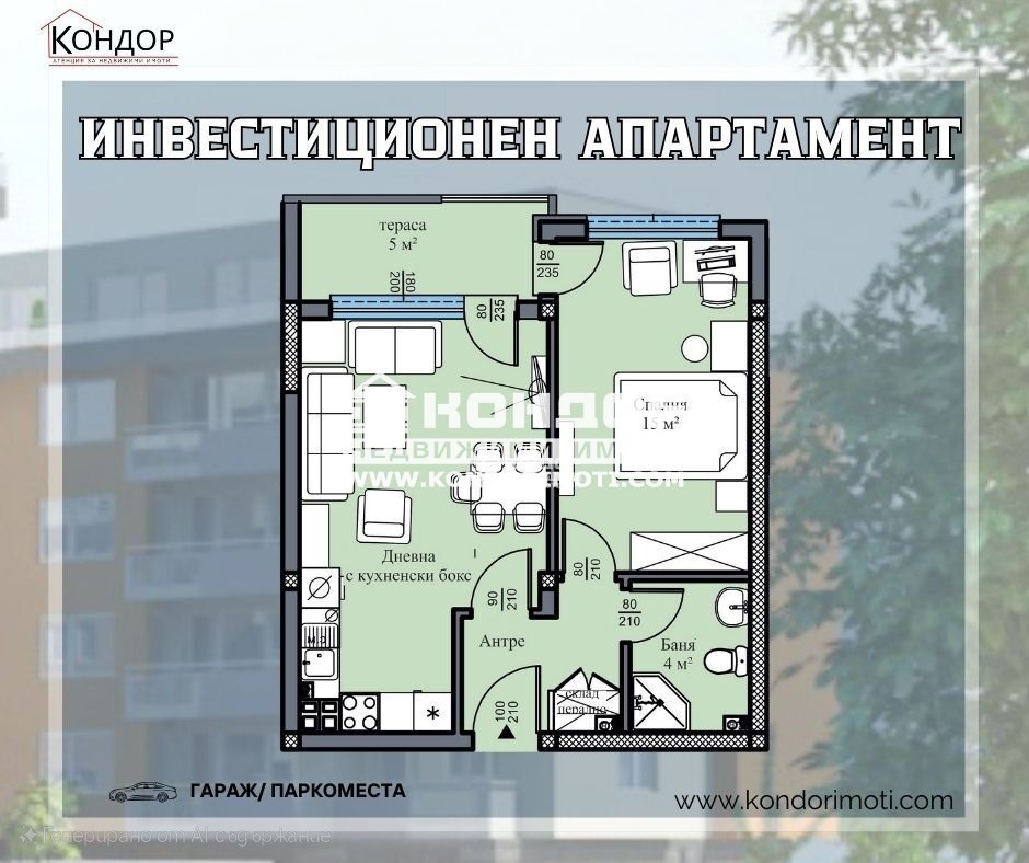 Оферта 67880: Предлагаме Ви възможността да си закупите двустаен апартамент в нискоетажна жилищна сграда намираща се на тихо и спокойно място в близост до всички необходими комуникации, училища, детски градини, удобен транспорт и големи хранителни хипермаркети. Сградата е проектирана проектирана с изключително нисък процент общи части - 10%, което дава повече реална и използваема площ на стаите и създава максимален комфорт на своите ползватели. Жилището се състои от дневна с кухненски бокс, голяма самостоятелна спалня 15кв.м., баня с тоалетна, перално, входно антре и една тераса. Перспективна ИНВЕСТИЦИЯ ЗА ОТДАВАНЕ ПОД НАЕМ!!! Изпълнението се осъществява с висококачествени материали и съвременни технологии, по европейски стандарт, шест камерна PVC дограма, блиндирана входна врата с 4-странно заключване, сензорно осветление, хидравлични асансьори с огледална кабина.ВИЖТЕ ОЩЕ ИЗГОДНИ ОФЕРТИ НА https://www.kondorimoti.com/ С ЕЖЕДНЕВНА АКТУАЛИЗАЦИЯ!