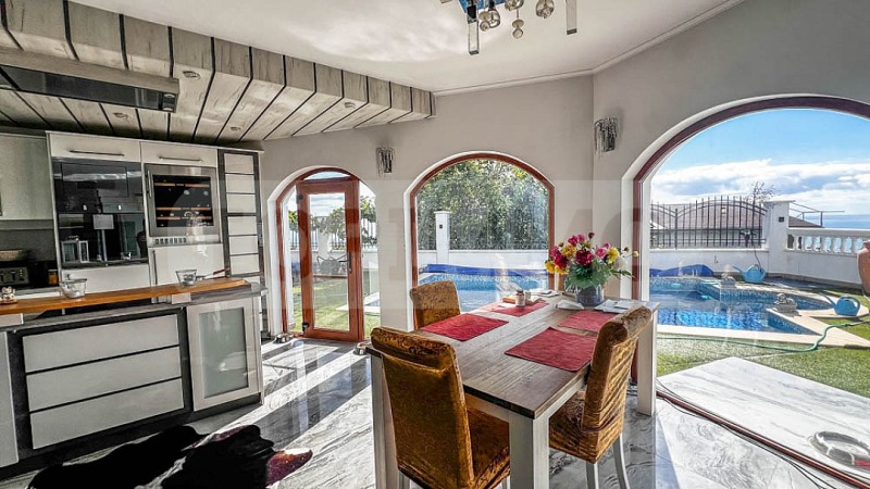 Първи етаж: просторна дневна с трапезария и модерно оборудвана кухнята с висококачествени кухненски уреди, баня с тоалетна, килер. От дневната се излиза на просторна открита тераса с отопляем басейн (4 на 6 метра), от която се открива уникална панорамна гледка към Черно море, Нос Калиакра и курортен комплекс Албена.