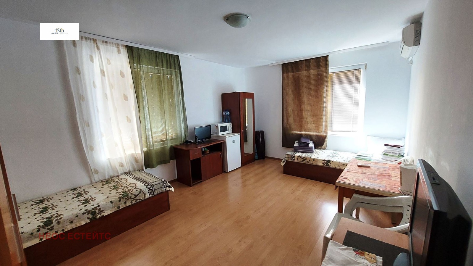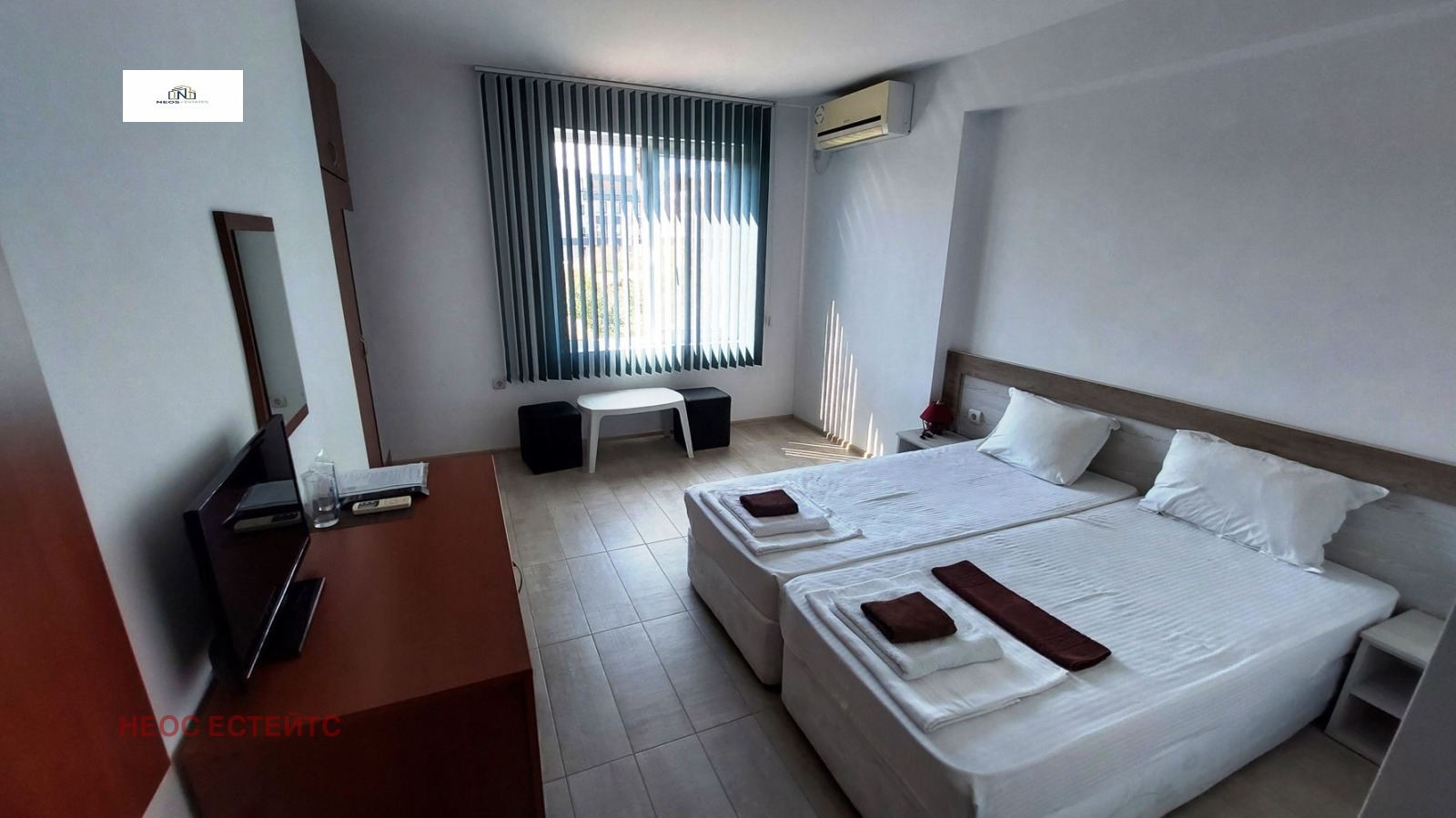 ОМЕГА представя за продажба пет етажен семеен хотел в гр.Созопол. Сградата е построена в новата част на града, на 600 метра от плаж Хармани. Площта на поземления имот, върху който е построена, е 383 кв.м. Конструкцията е стоманобетонна, стени от червена тухла. Дограмата е PVC, със стъклопакет, входни и интериoрни врати MDF и PVC. Хотелът разполага с 14 двойни стаи с баня/WC, 1 апартамент(всекидневна с кухня, баня/WC, спалня с баня/WC) и едно студио с панорамна тераса. На етаж 1, със ЗП 137.29 кв.м., са разположени апатаментa и две двойни стаи. Етажи 2 и 3 са със ЗП 137.12 кв.м. и имат по 4 двойни стаи. Етаж 4 е със ЗП 131.42 кв.м и също има 4 двойни стаи. На етаж 5 е разположено студиото с панорамна тераса. Етажът е със ЗП 79.96 кв.м. Всички стаи са оборудвани и обзаведени. Имат самостоятелни бани с WC, интернет, телевизия, хладилник, климатик. На първия етаж се намира и рецепция. В сутерена на хотела има две помещения, като едното е свободно, а в другото са разположени бойлерите(комбинирани, електричество и слънчеви панели) за топла вода. Дворът към сградата е облагороден и разполага с навес и място за маси и пейки.