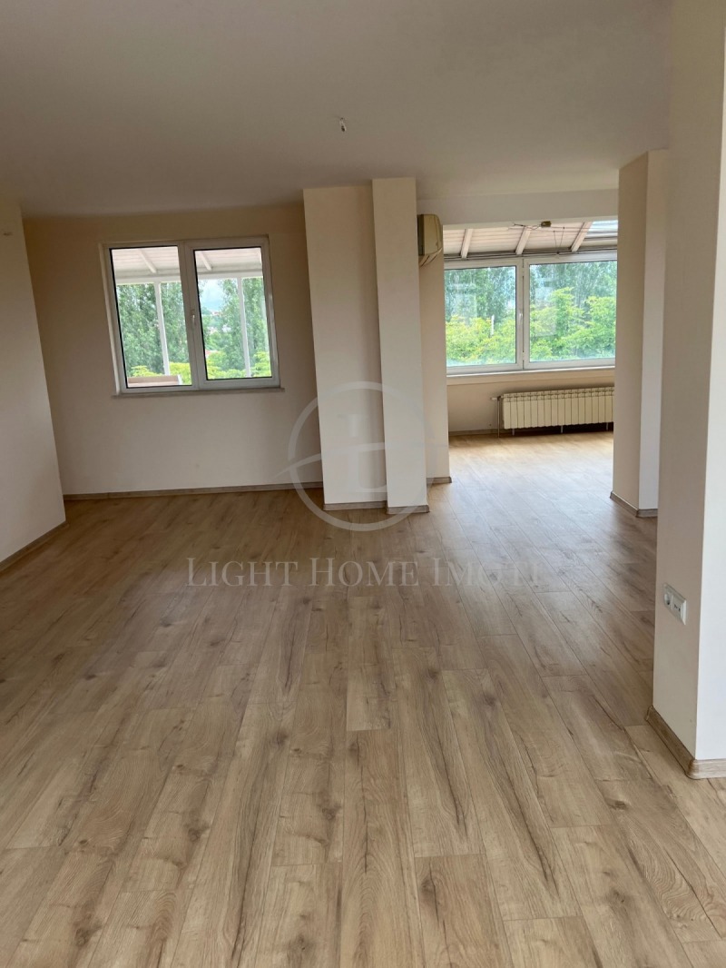 - Разпределение: Просторен и светъл хол с трапезария и кукненски бокс 80кв.м, две спални, баня с тоалетна и входно антре.