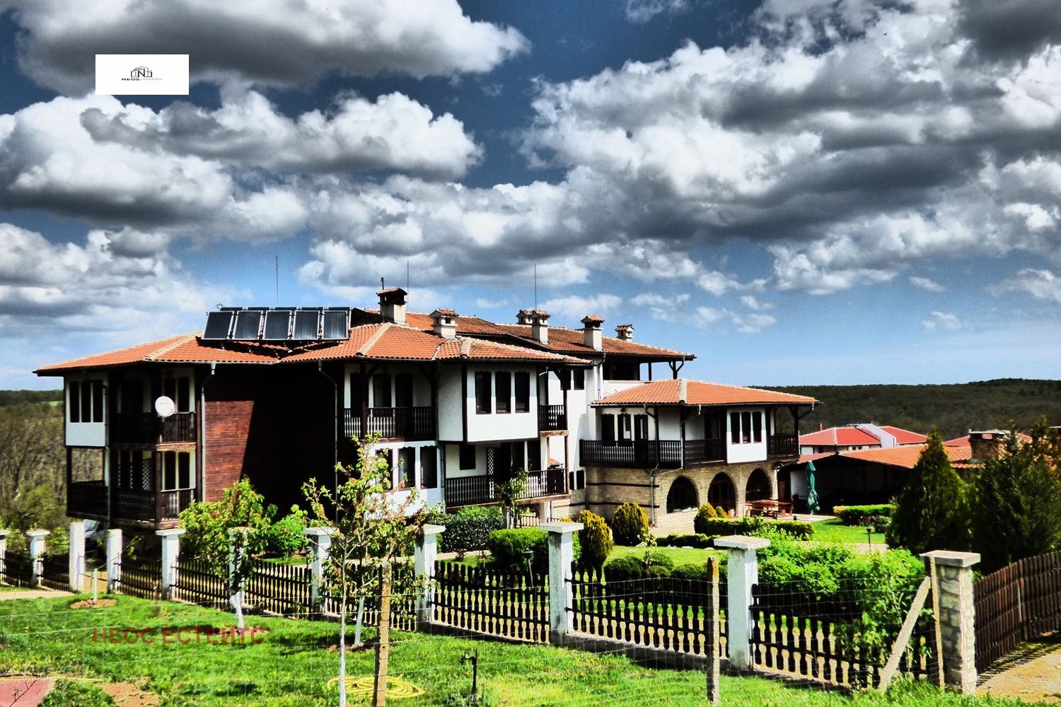 Имаме удоволствието да предложим за продажба етнографски комплекс, който се намира в полите на природен резерват 'Странджа'. Локацията е само на 5 км. от плажа на Приморско. Районът е екологично чист и е благоприятен за всякакъв вид туризъм. Построен е през 2005 година и въведен в експлоатация. Състои се от хотелска част с вътрешна механа с кухненски блок и сервизни помещения, външен ресторант, занаятчийски и етнографски кът, както и просторен, красиво аранжиран двор. Хотелската част разполага с 9 двойни стаи, 2 тройни и 1 апартамент. Всяка от стаите има телевизор, минибар, локално отопление и разбира се - неописуемата гледка към Странджа планина. Вътрешната механа разполага с 60 места и е изградена в типичен етно-битов стил. Външният ресторант разполага с 300 места и през лятото става арена на уникална фолклорна програма, включваща интересна хореография,жива музика,хора, игри с публиката, нестинарски танци. Поземленият имот, върху който е построен комплекса, е 4 077 кв.м. РЗП на хотелската част 1240 кв.м. РЗП на външният ресторант 900 кв.м. В сутерена е предвидено помещение за винарна, което може да се пригоди за вътрешен басейн, фитнес зала, спа център и др. Площа му е 300 кв.м. На терена има изграден и външен басейн.