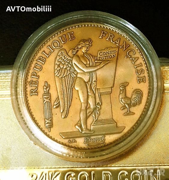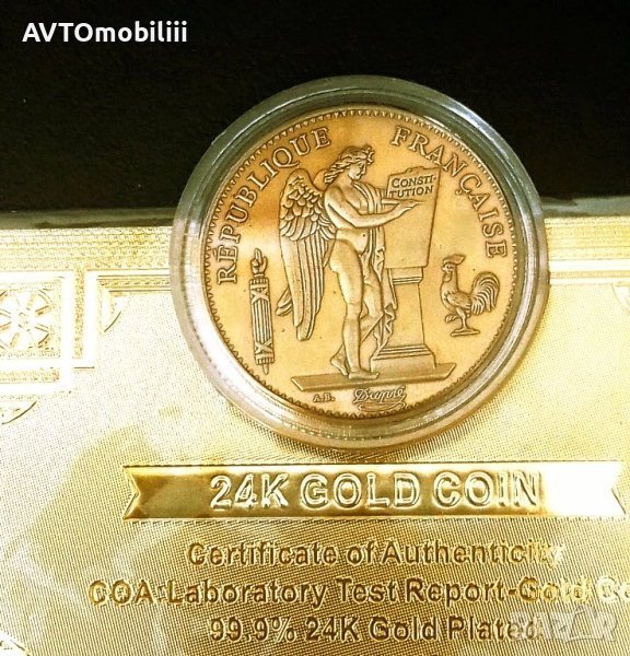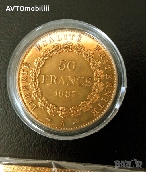 Позлатена монета 50 франка 1887 г със сертификат → Обява 51821038