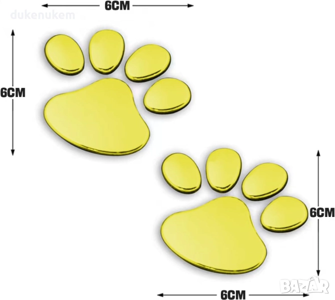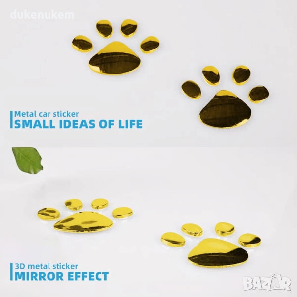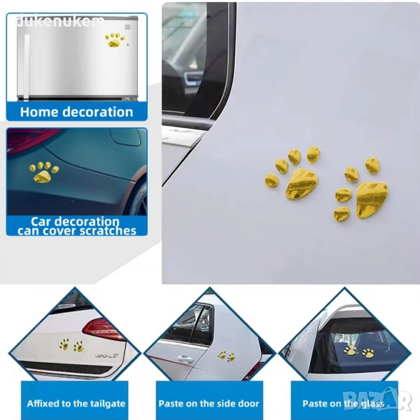 3D стикери лапички за автомобил – златни, 6 броя