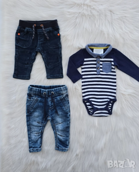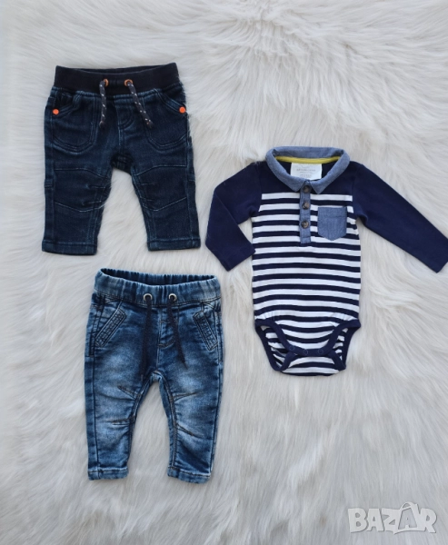Бебешки дънки и боди риза 0-3 месеца → Обява 51821391