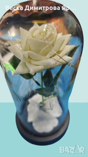 Бяла роза под стъклен купол - Вечна елегантност → Обява 51821481