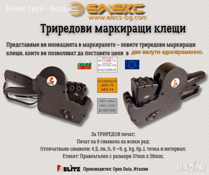 Сервизно обслужване: собствен сервиз на Елекс Груп-Холдинг ЕООД.
