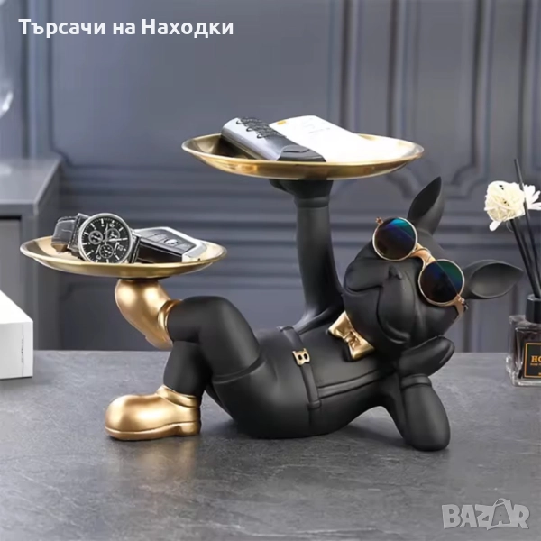 Комплектът включва: 1 бр. булдог фигура + два подноса