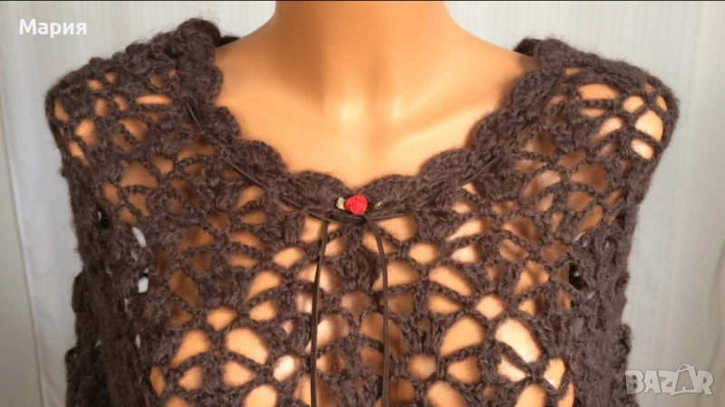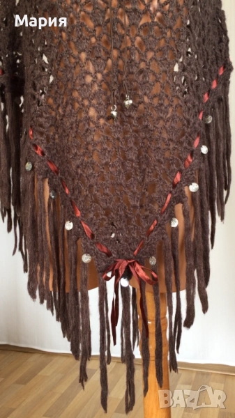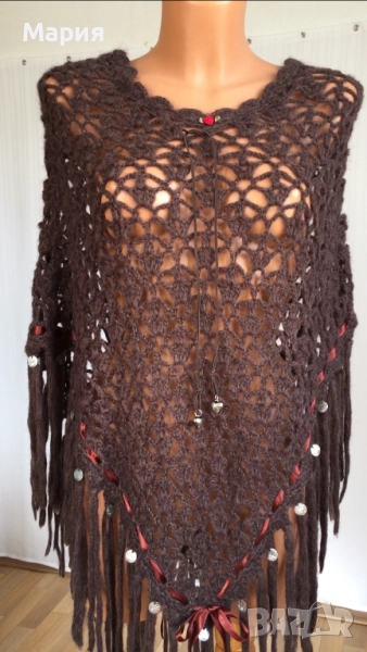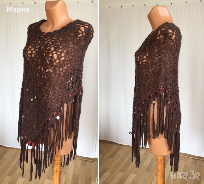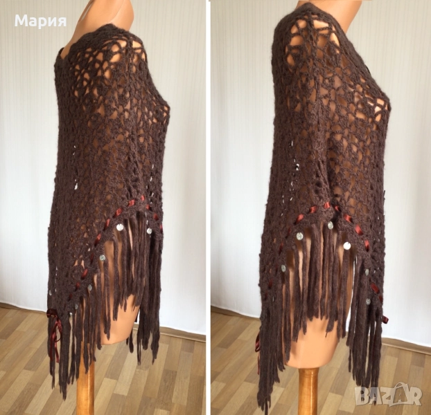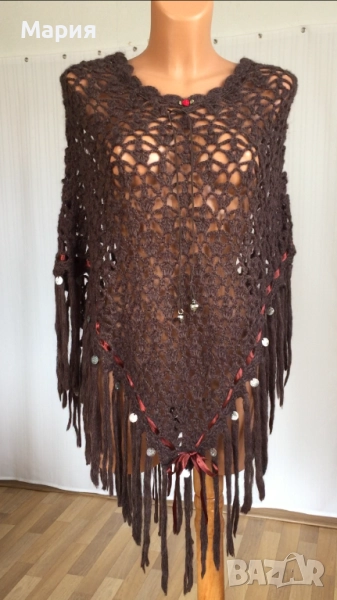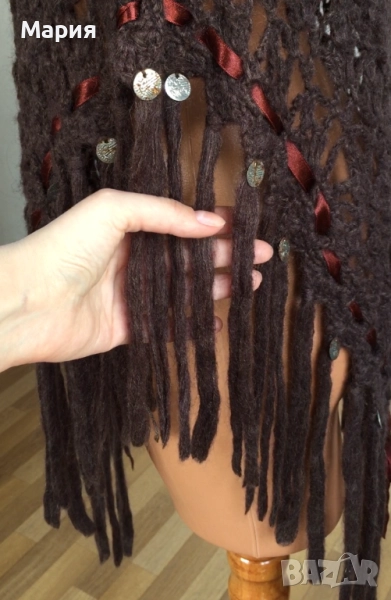 S / M / L Ново Дамско Марково Пончо Isla Ibiza Bonita Плетено Кафяво с ресни → Обява 51822349