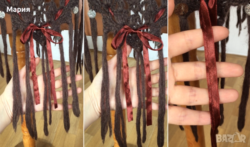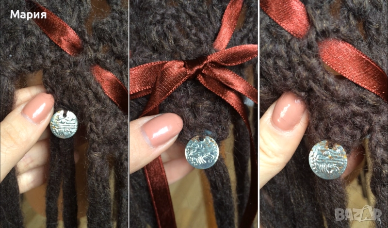 Пончото е ново, не носено, прибрано е в колекцията ми, но металните парички по него имат олющване, като те могат да се сменят със подобни, ако имате желание.