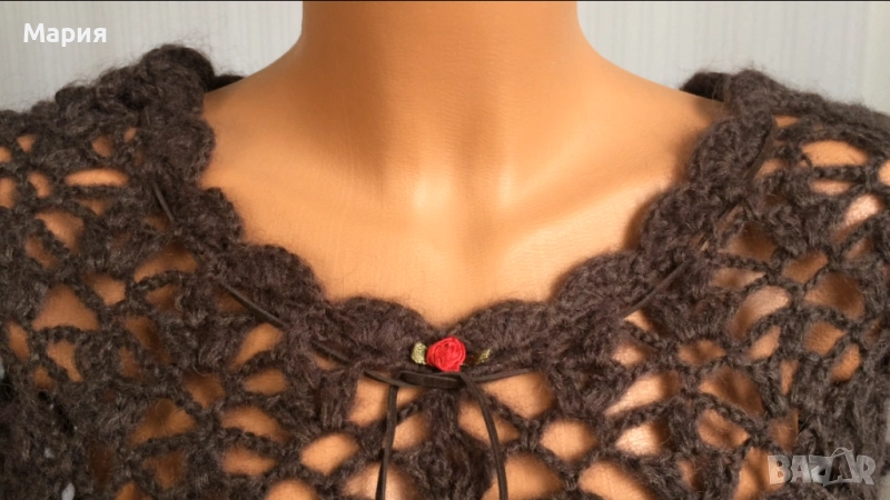 Продавам красиво дамско плетено пончо в топъл кафяв цвят на испанската модна къща Isla Ibiza Bonita.