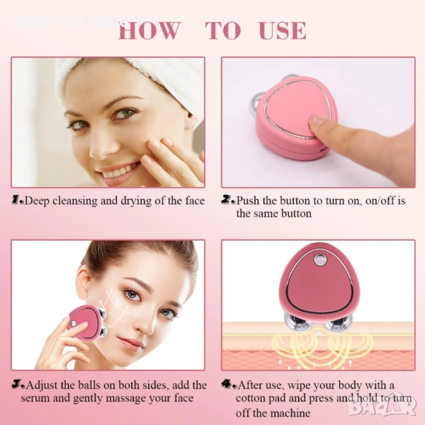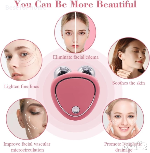 Ергономичен дизайн: Микротоковият масажор има ергономичен дизайн, компактен и деликатен, побира се в дланта ви, с технология за йонен хранителен разтвор, ефективно прониква в клетките на кожата и я прави сияйна.