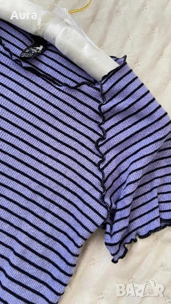 Black purple striped crop top, снимка 1 - Корсети, бюстиета, топове - 51822498 Black purple striped crop top, снимка 2 - Корсети, бюстиета, топове - 51822498 1/2