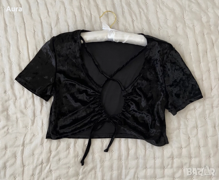 Black velvet tie-front crop top , снимка 1 - Корсети, бюстиета, топове - 51822621 Black velvet tie-front crop top , снимка 2 - Корсети, бюстиета, топове - 51822621 Black velvet tie-front crop top , снимка 3 - Корсети, бюстиета, топове - 51822621 1/3