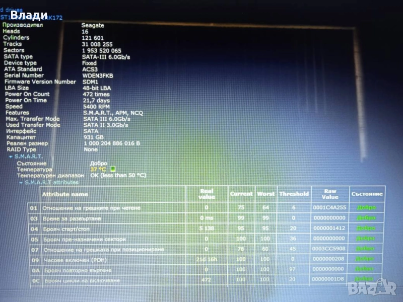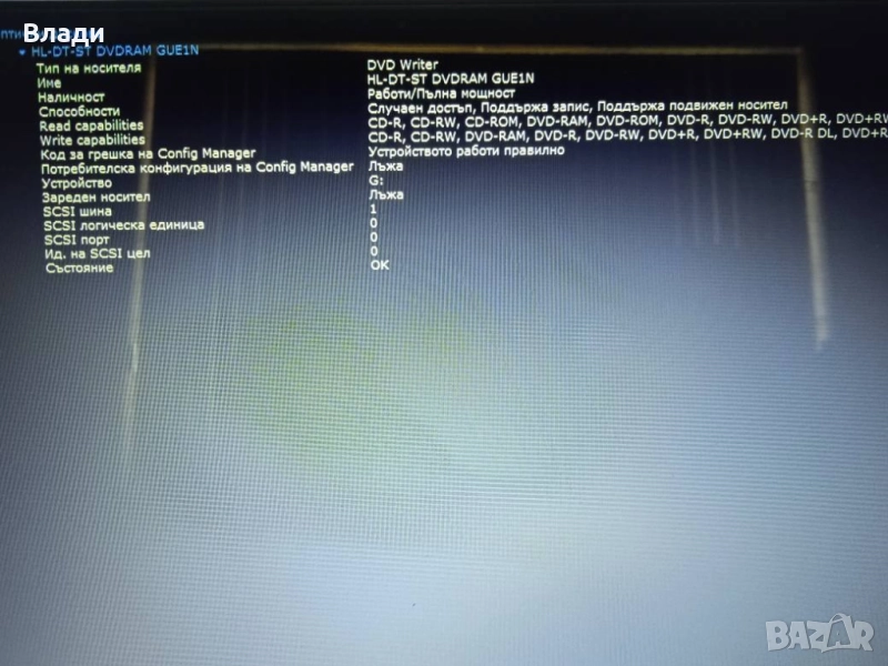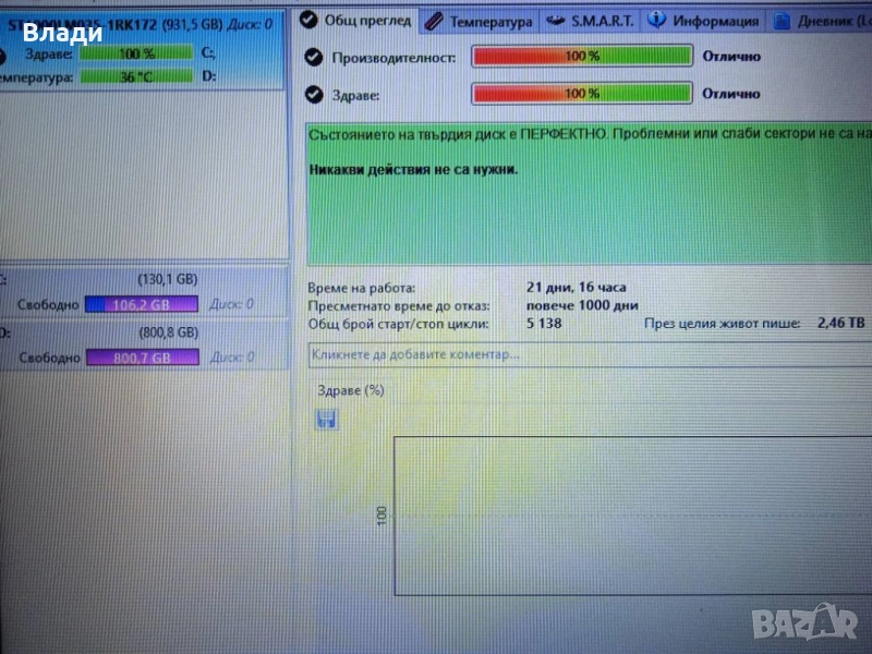 Инсталиран с Windows 10 Home 64 bit,Office 2019,HDD Sentinel,Speccy и Aida 64,за да се тества преди да се плати.