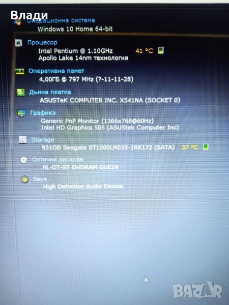 ASUS VivoBook X541N 4ядрен 1TB 4 часа батерия → Обява 51822825