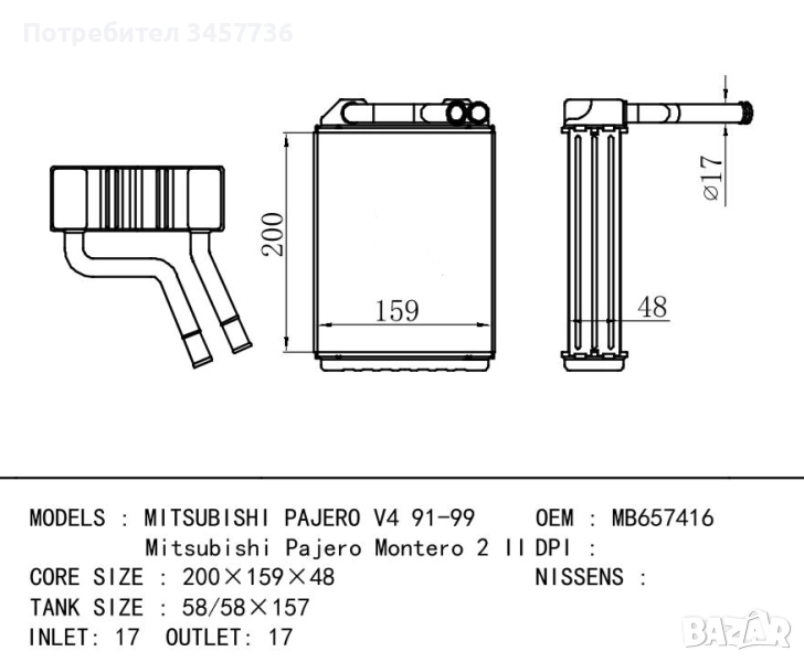 Ново радиаторче парно за Митсубиши Паджеро - модели от 1991 до 1999 година