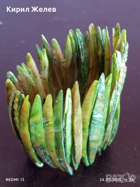 Дамска гривна Кралски седеф разтеглива преобладаващ зелен цвят уникално красива 51367