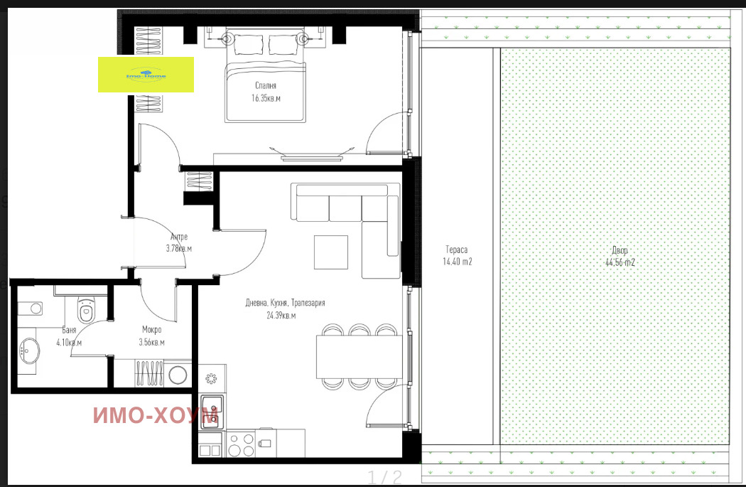 Продава последен 2-стаен апартамент на изключително комуникативно място в иновативна и модерна сграда.