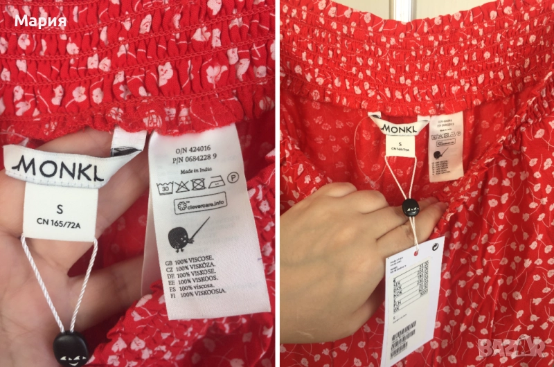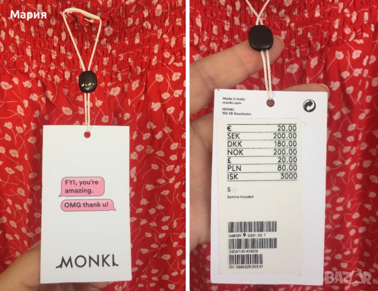 С размер Нов Дамски Панталон Monki с етикети Червен Бял Флорален на Цветя → Обява 51823547