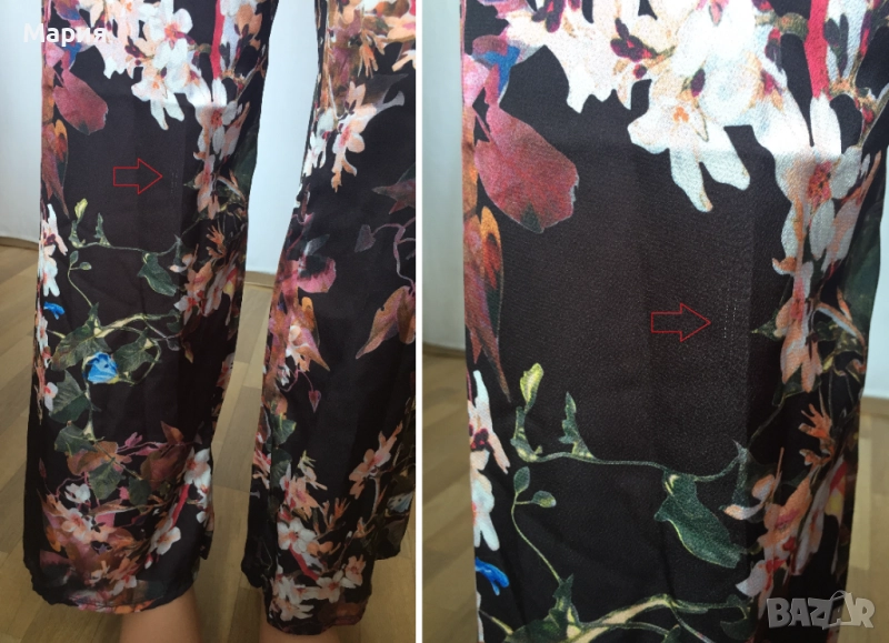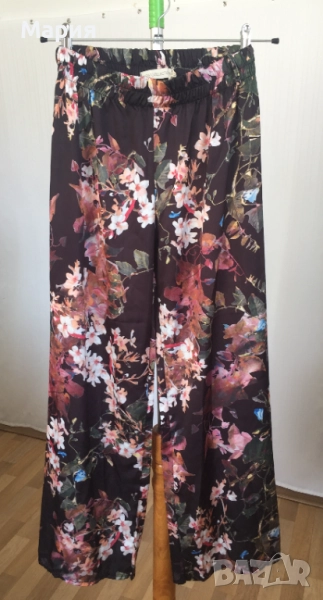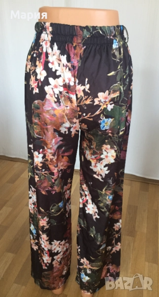Продавам чисто нов дамски летен панталон черен с приятни и краисиви флорални мотиви.