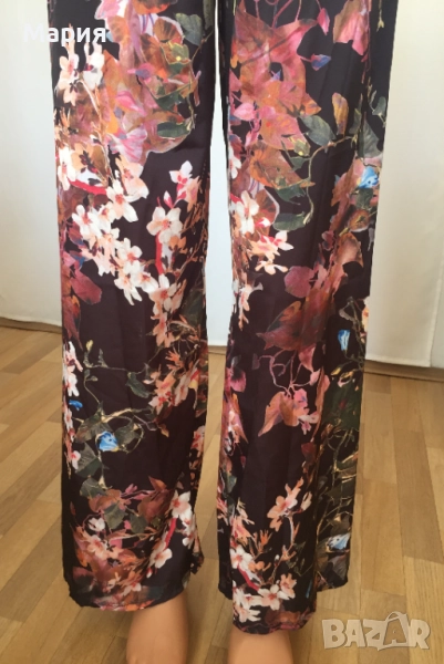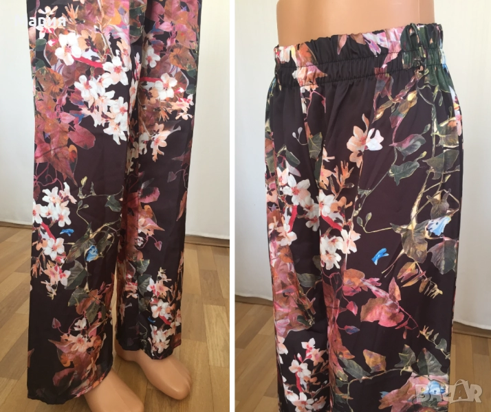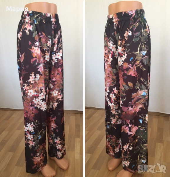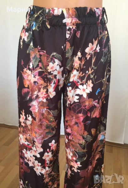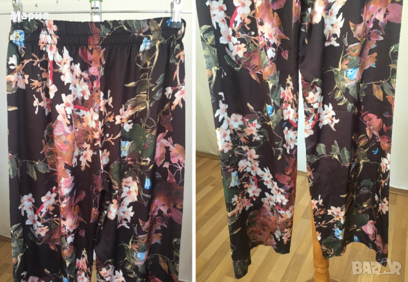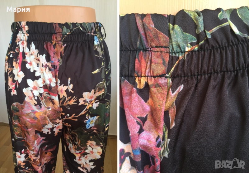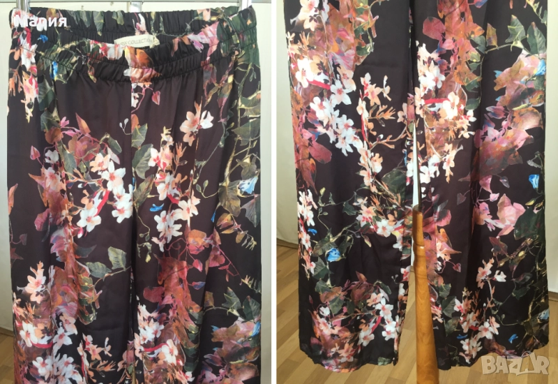 С размер Нов Италиански Дамски Летен Панталон New Collection Pink Широк Флорален Черен Цветен Шарен → Обява 51823643