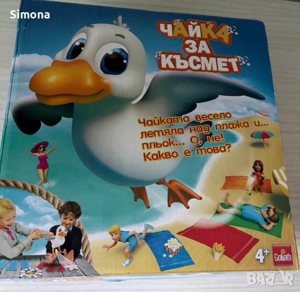 Продавам настолна игра Чайка за късмет на Goliath. Играта е в отлично състояние, използвана е само няколко пъти. Подходяща е за деца над 4 години и предлага забавни моменти за цялото семейство. Комплектът включва: