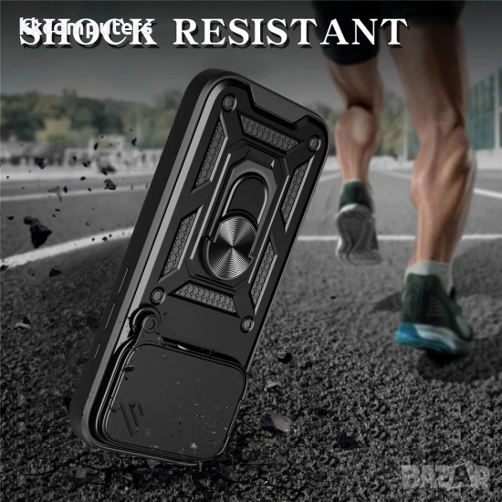 Силиконов твърд кейс bSmart Defender Slide, За iPhone 17 Pro Max (6.9), Черен