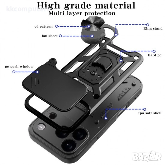 Силиконов твърд кейс bSmart Defender Slide, За iPhone 17 Pro (6.3), Черен