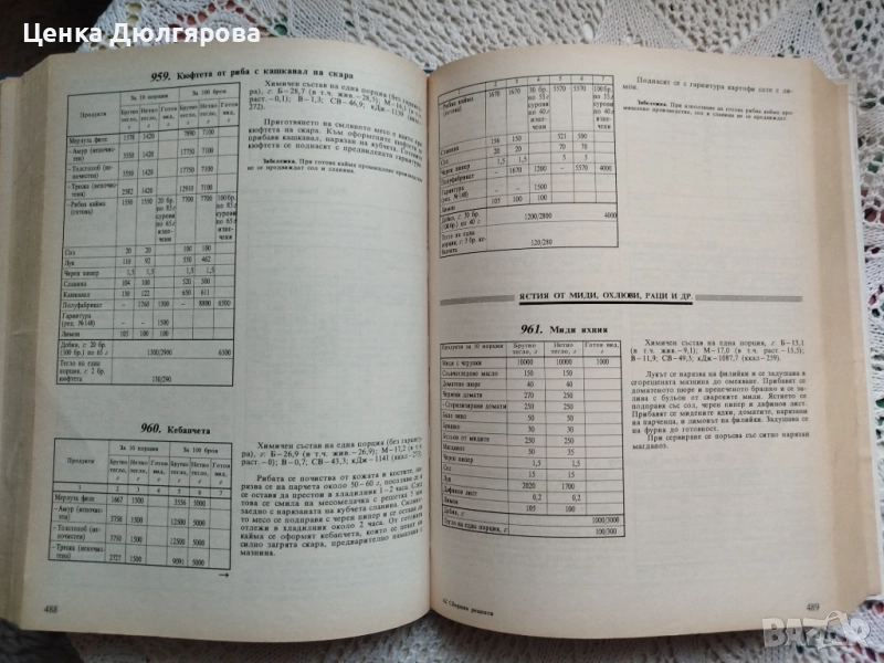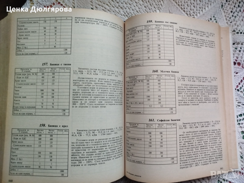 Изданието съдържа: повече от 1600 ГОТВАРСКИ РЕЦЕПТИ съставки на ястията сосове, гарнитури студени и топли предястия супи ястия от зеленчуци ястия от риба ястия от птици ястия от месо ястия от субпродукти ястия от дивеч ястия от българската национална кухня Повече от 500 СЛАДКАРСКИ РЕЦЕПТИ Кухненски десерти тестени сладкарски изделия замразени десерти десерти от българската национална кухня Повече от 100 РЕЦЕПТИ ЗА НАПИТКИ топли и студени напитки безалкохолни и алкохолни коктейли хигиенни изисквания към заведенията за хранене фири и добиви при студена и топлинна обработка на хранителни продукти естествени фири при хладилно съхраняване на кулинарни изделия норми за взаимозаменяемост на хранителните продукти при приготвянето на ястия в заведенията за хранене хигиенни изисквания към заведенията за хранене хигиенни норми и изисквания за добавките в хранителните продукти физиологични норми за хранене на населението химичен състав на някои хранителни продукти изисквания за въвеждане на обща щадяща диета в столовете за работници, служители и учащи се закон за храните
