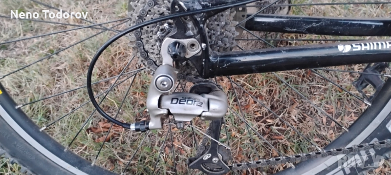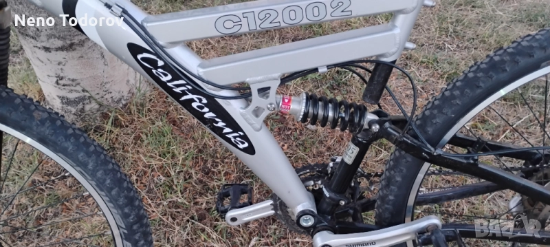 26 цола алум. байк California произведен в Германия,shimano deore окачване, преден и заден амортесьор, двойностенни алум. капли с главини deore, 27 скорости shimano deore, 46 см. височина на рамката, гуми нови shwalbe. Велосипеда е почти нов, просто е стоял известно време без да бъде каран .