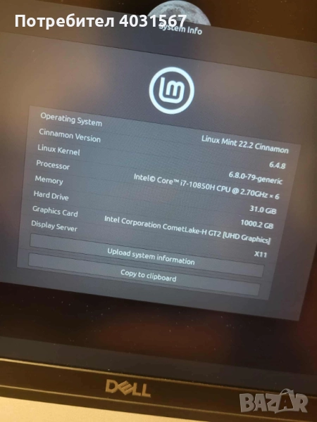 * Процесор: Intel Core i7-10850H (Comet Lake), 6-ядрен, 12 нишки