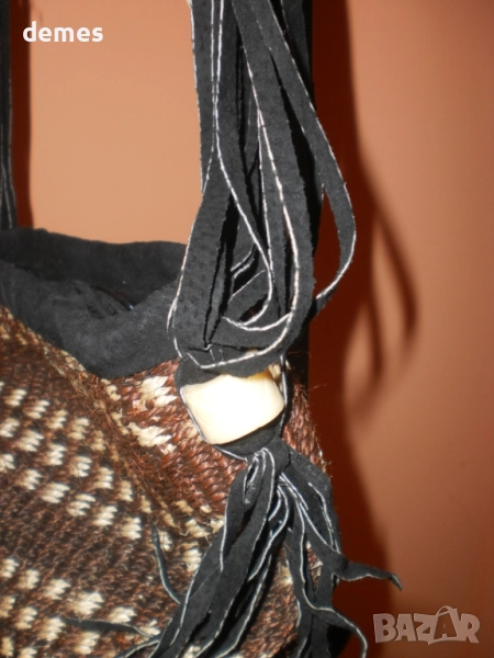С красива елегантна дръжка на ресни, която позволява да се носи през рамо.