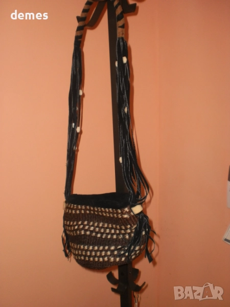 Чантата е изработена от фибри от кората на боабаб, което е често срещано диворастящо огромно дърво в тези географски ширини.