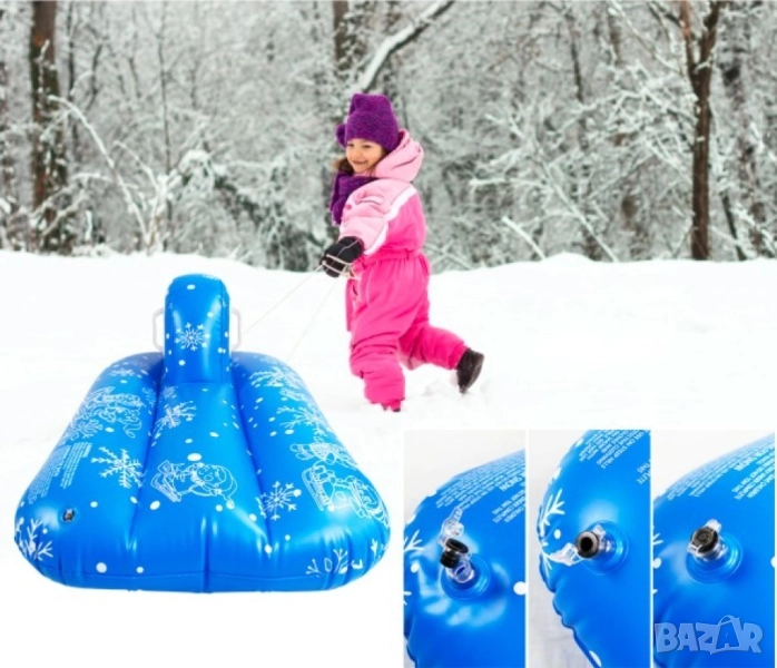 Универсален надуваем джет с компактни размери – 50×120×68 см, изработен от здрав PVC материал с дебелина 0,6 мм. Подходящ както за снежни забавления, така и за водни игри през лятото. Оборудван с удобни дръжки за стабилност и контрол. Лек, практичен и лесен за пренасяне – идеален за деца и възрастни. Съвет: Надувайте с ръчна или електрическа помпа, използвайте на равна повърхност и винаги под надзор при деца.