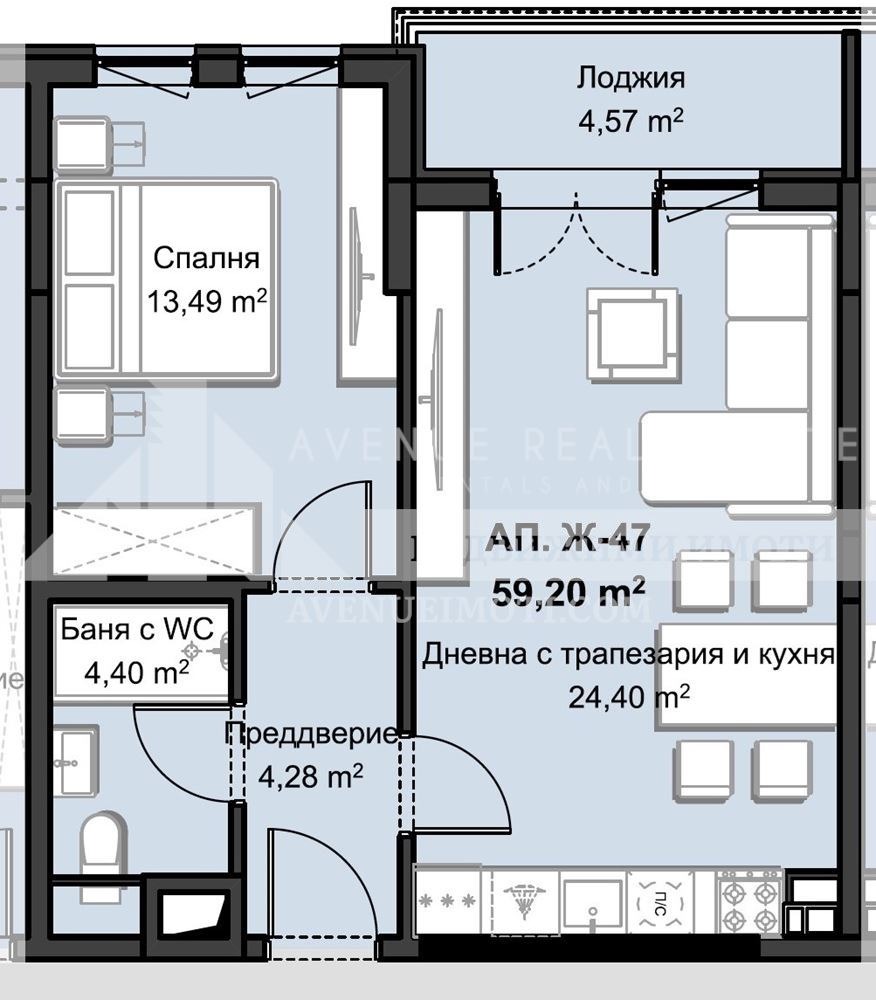 Агенция Авеню имоти има удоволствието да ви представи Двустаен апартамент в луксозен нов комплекс