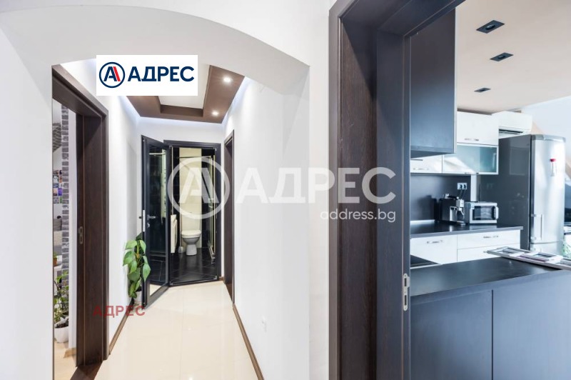 Тристаен апартамент в района на Гранд Мол. Жилището се състои от: просторен дневен тракт с обособена кухненска част с вградена кухня, трапезарна част и холна част с мека мебел, две спални, баня с тоалет, перално помещение - килер и коридор. Апартаментът се предлага отлично завършен и обзаведен с висок клас на довършителните работи, мебели и уреди. Към жилището има и избено помещение. Възможност за паркиране до един автомобил в двора на сградата. Апартаментът позволява да бъде преустроен с три спални или да се разделят два самостоятелни апартамента на двустаен и боксониера с цел отдаване под наем.