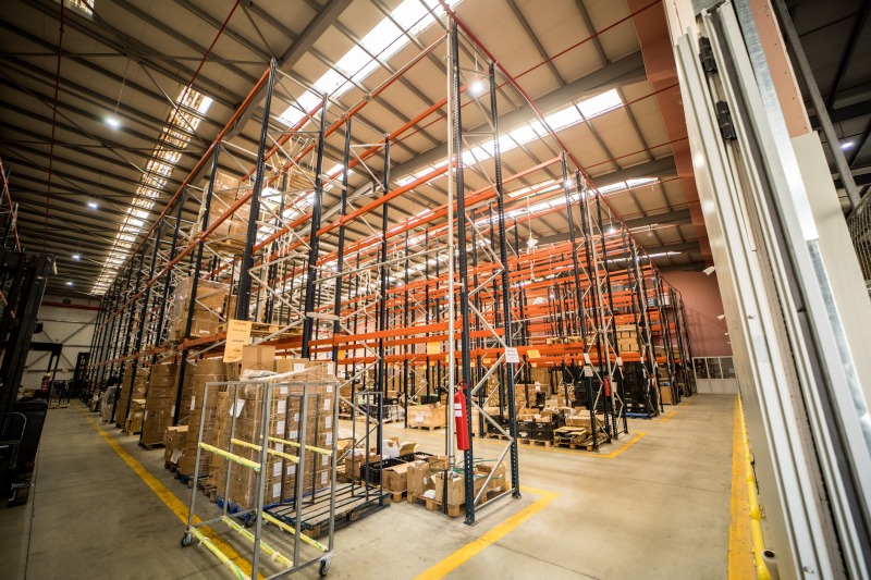 The warehouse-spaces are equipped with racks, flue-systems, fire-alarm and fire-fighting through sprinkles connected to individual water supply with huge capacity. Height of the warehouses 7-9 m, the highest point is 9.6 m.