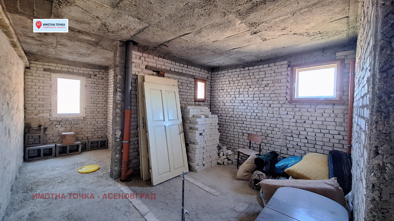 Второто жилище е 65 кв.м (недовършен) със собствен друг вход: Хол с кухня, спалня и баня с тоалетна и тераса.