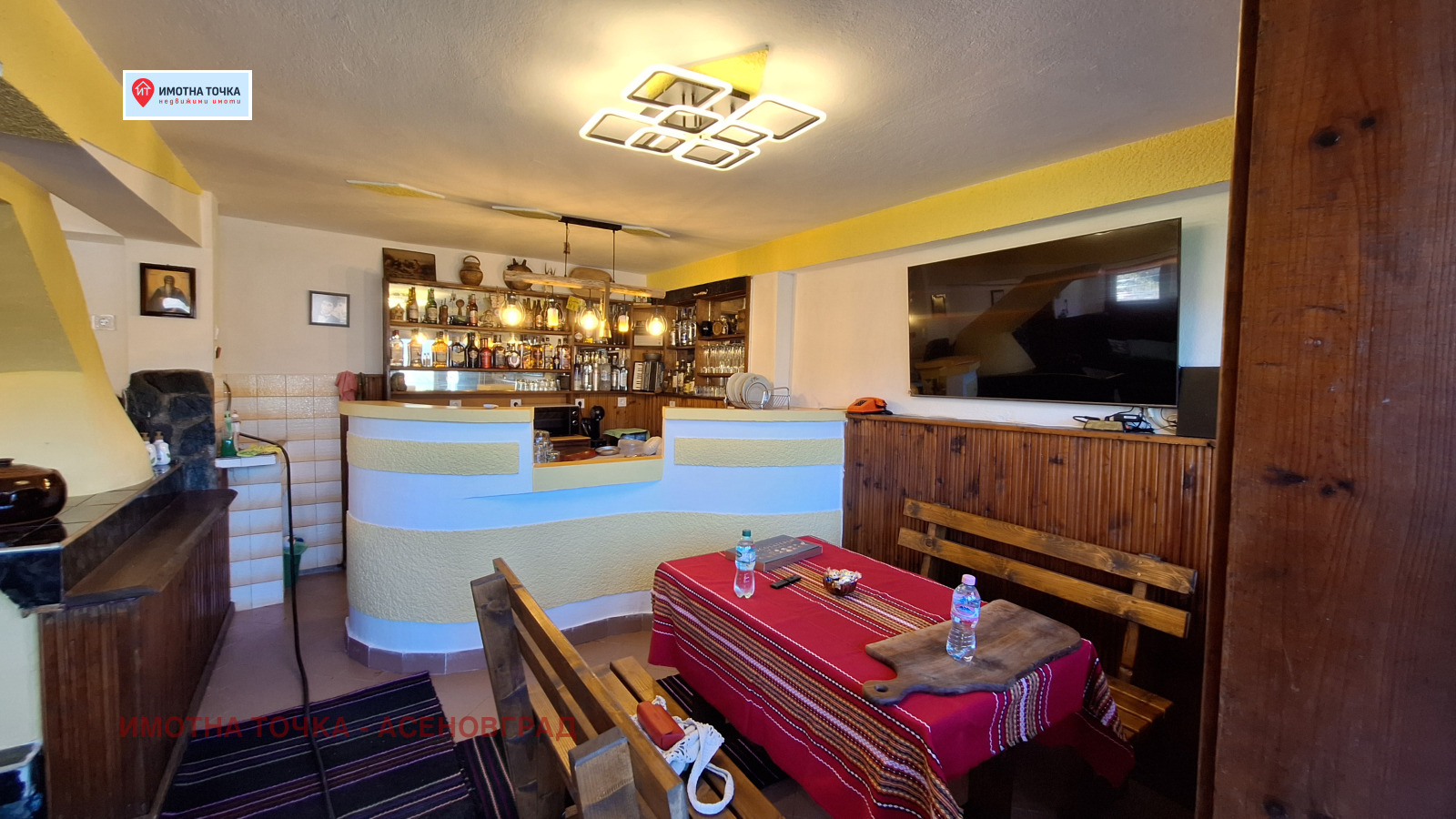 Приземният етаж е обзаведена механа, с камина и бар + склад с изба подходяща за винарна, баня и тоалетна с вход от двора.
