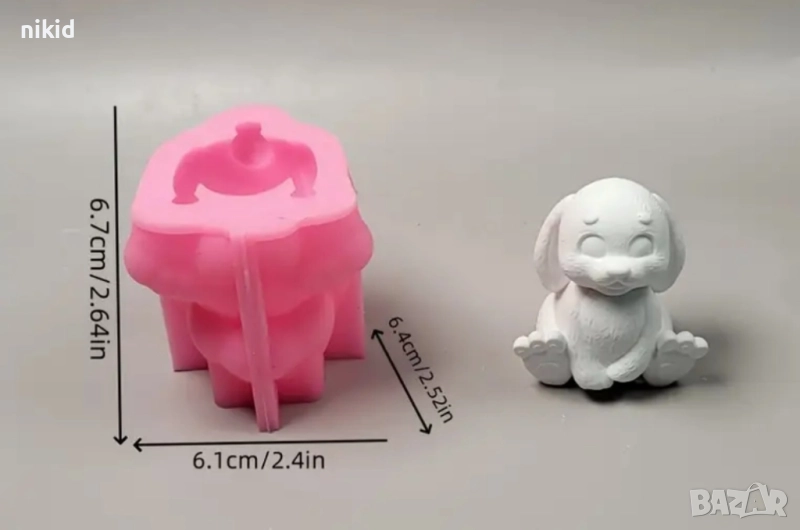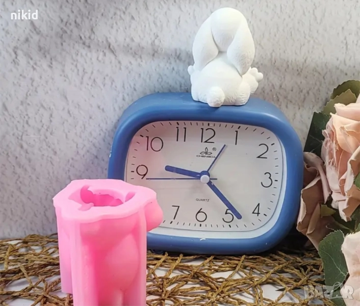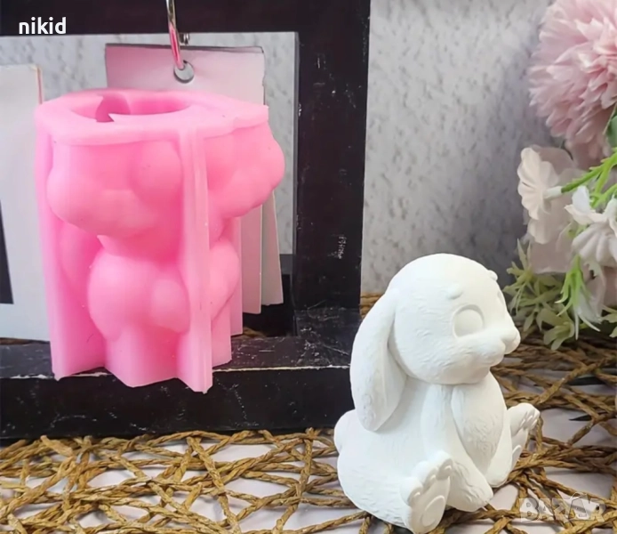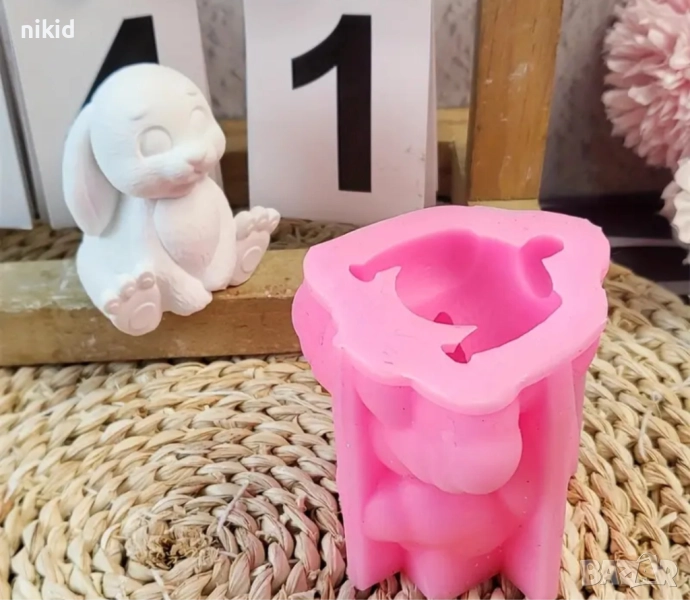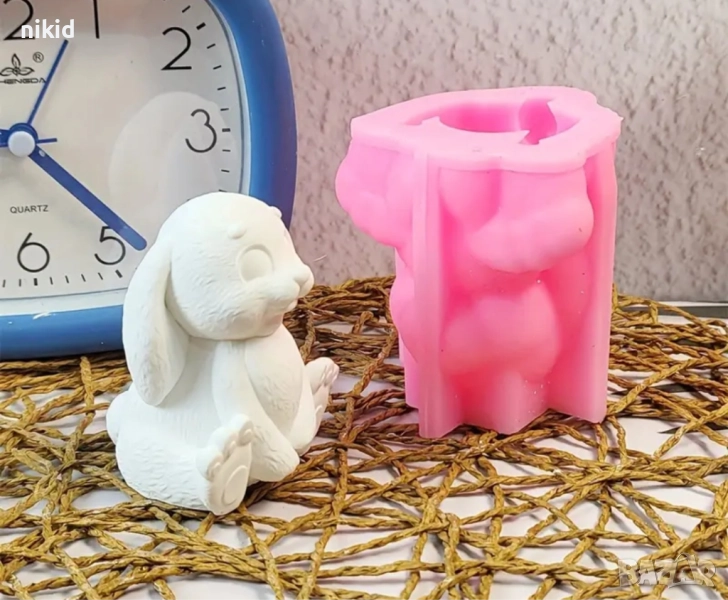 3D Седнал разкрачен заек силиконов молд форма свещ смола гипс шоколад декор украса → Обява 51828486