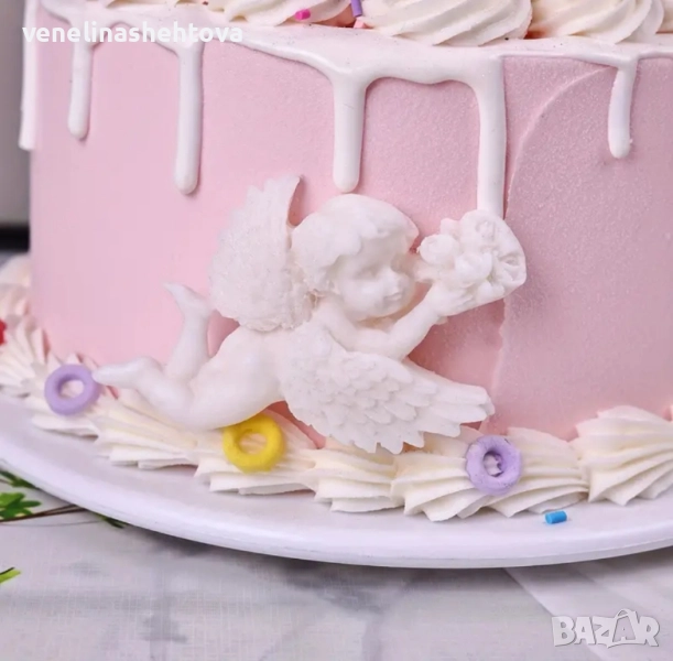 Ангел ангелче с букет рози и сърце Силиконов молд форма за гипс смола фондан за декорация на торта → Обява 51829045