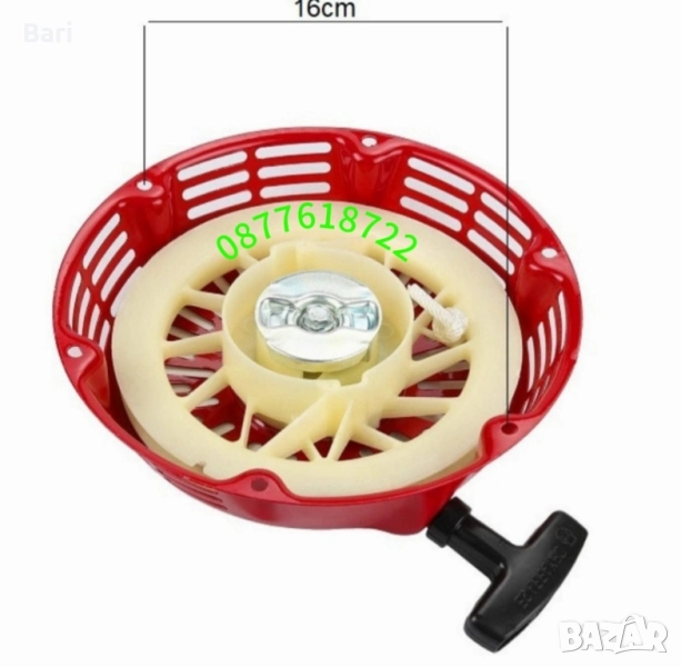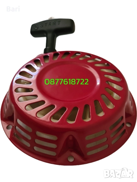 Стартер, съвместим с всички бензинови двигатели 5.5к.с., 6.5к.с., 168F, с генератори модел Honda GX 140, GX 160, GX 200, мотофреза RD-T08,RAIDER,BELLINI,MEGA TOOLS,PREMIUM и други.