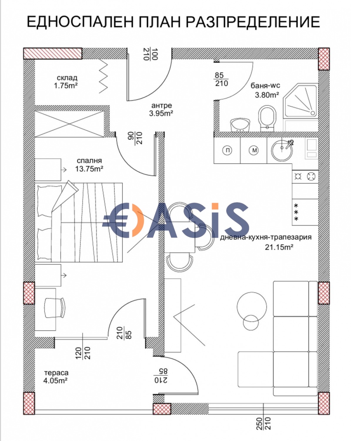 Обща площ: 63.56 кв. м.