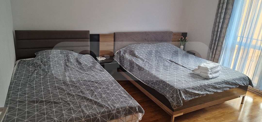 Отдава се напълно обзаведен с всичко необходимо за едно домакинство. Апартаментът се намира в затворен комплекс с басейн. Общите части са добре поддържани. В близост има магазини, заведения, детски атракциони. Плажът е на 400-500 метра разстояние. Наблизо има автобусна спирка.